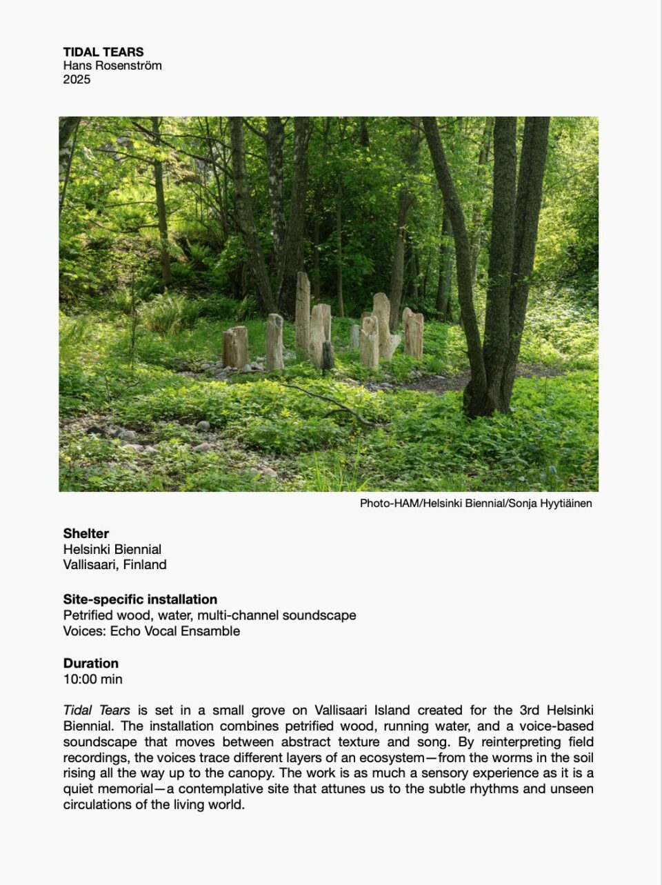 The year’s most significant support went to the Helsinki Biennial 2025, which the foundation has been backing since 2023. In 2025, the support was channelled to artist Hans Rosenström’s work created specifically for the Biennial on Vallisaari — an island you can’t reach on foot, but ferries run every hour from the Market Square.